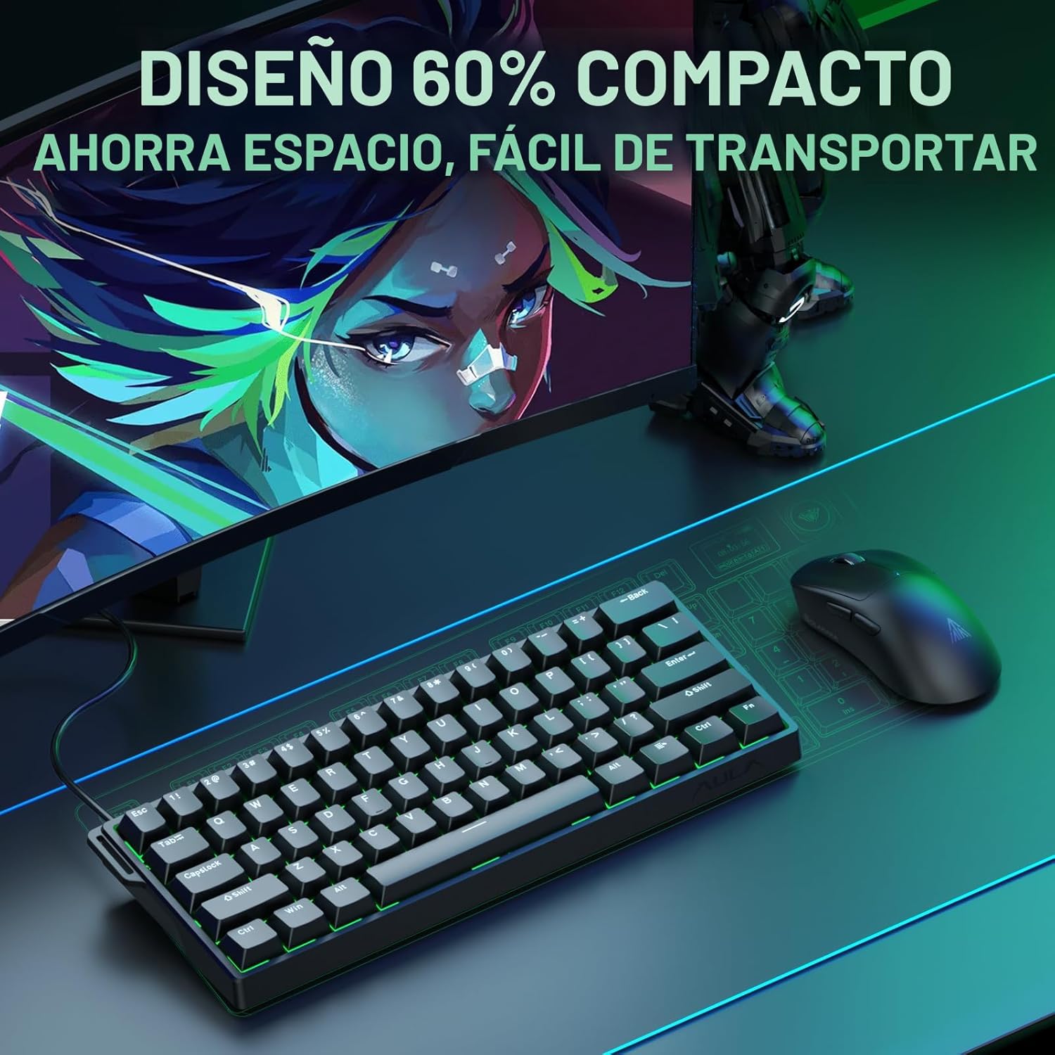 Sobre este artículo Teclado de interruptor magnético de efecto Hall de alto rendimiento: El teclado AULA Win60 HE 60% cuenta con interruptores magnéticos avanzados y desarrollados a sí mismos y un controlador ligero que no requiere mucha memoria, que ofrece tasas de sondeo de hasta 8000Hz para tiempos de respuesta ultrarrápidos. Como teclado de efecto salón, aprovecha la tecnología magnética de vanguardia para garantizar un accionamiento preciso y consistente sin contacto físico, eliminando el desgaste asociado con los interruptores mecánicos tradicionales. Este nivel de rendimiento te da una ventaja competitiva en los juegos con una precisión y fiabilidad inigualables Optimizado para juegos FPS: Diseñado para títulos de FPS como Valorant y CS2, los interruptores magnéticos del Win60 HE permiten un asomado más rápido y disparo rápido, mejorando la precisión y el posicionamiento. Experimenta una clara ventaja en momentos de alto riesgo con este teclado para juegos Teclado para juegos de disparo rápido: Con una distancia de paso RT ultra baja de solo 0.001 in, el Win60 HE garantiza tiempos de respuesta ultrarrápidos, perfectos para disparos rápidos y combos complejos. Mantente a la vanguardia en partidos intensos con una velocidad y precisión inigualables Diseño compacto del 60%: con su pequeño teclado de diseño 60% que ahorra espacio, el Win60 HE es ideal para juegos, trabajo o viajes. Su tamaño compacto ahorra espacio en el escritorio sin sacrificar la funcionalidad, por lo que es perfecto para jugadores y mecanógrafos por igual Iluminación RGB dinámica: El Win60 HE cuenta con un diseño de posición de luz más baja que ilumina teclas PBT, junto con 16.8 millones de colores RGB personalizables. Crea impresionantes efectos de iluminación para que coincidan con tu configuración y eleven tu ambiente de juego Personalización sin esfuerzo con controlador basado en web: El Win60 HE cuenta con un controlador basado en la web potente pero fácil de usar, accesible desde cualquier dispositivo con conexión a Internet. Puede reasignar teclas sin esfuerzo, crear macros avanzadas y personalizar una iluminación RGB vibrante, todo sin necesidad de descargas de software voluminosas o preocuparse por la compatibilidad del sistema. La interfaz simplificada hace que sea fácil personalizar su teclado para juegos, trabajo o tareas creativas con solo unos pocos clics. Ya sea que seas un jugador competitivo o un profesional multitarea, el controlador basado en web de Win60 He garantiza una experiencia de personalización perfecta y sin complicaciones, poniendo precisión y comodidad al alcance de tu mano › Ver los detalles del producto