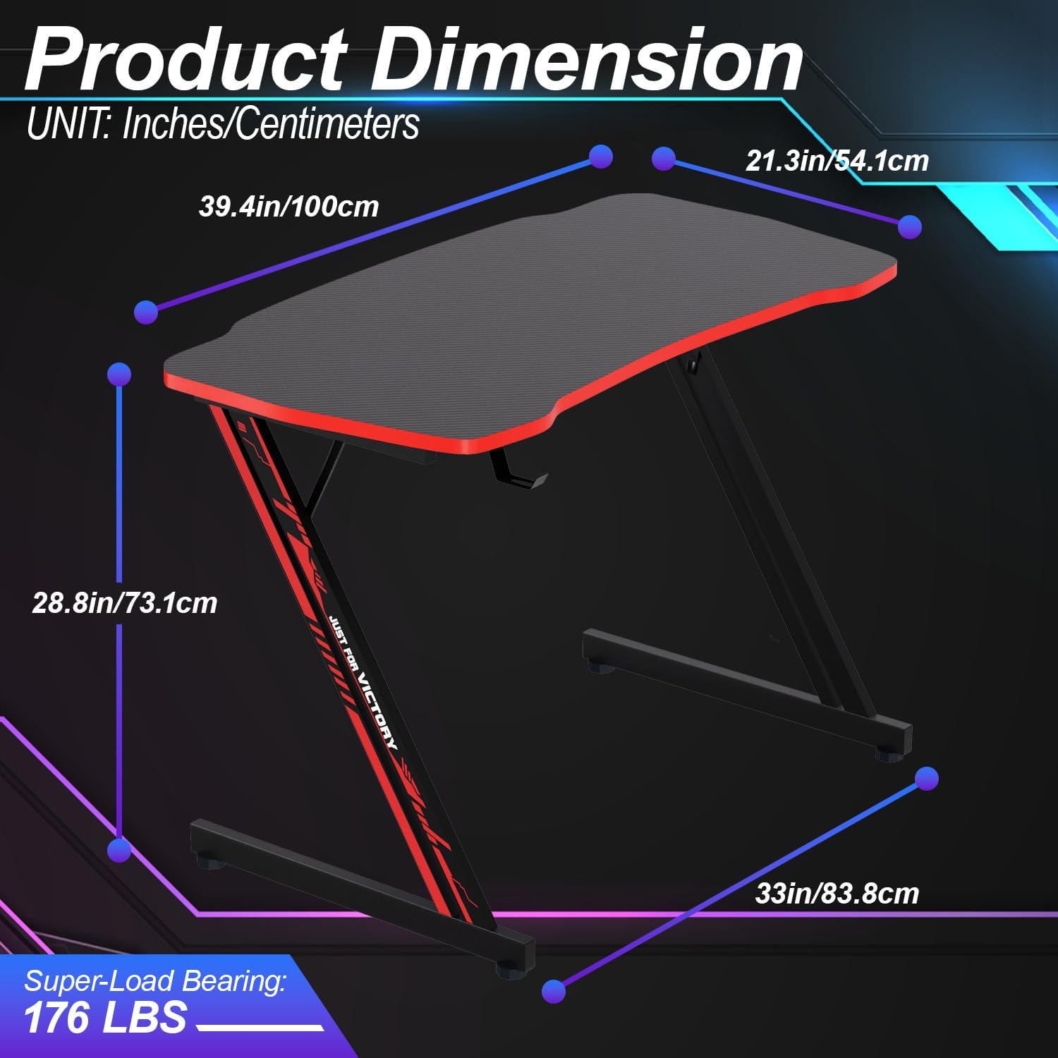 Sobre este artículo 【Amplia superficie para juegos】: el escritorio para juegos Ruesleag de 39 pulgadas de tamaño: 39.40 pulgadas de largo x 21.3 pulgadas de ancho x 28.8 pulgadas de alto, el espacioso escritorio ofrece una generosa cantidad de espacio para adaptarse a tu configuración de juego, incluyendo tu PC, teclados de juegos, monitores de juegos y otros equipos de juego. Con su gran superficie, puede tener todo su equipo esencial al alcance de la mano para una experiencia de juego inmersiva. Innovadora estructura en forma de Z: el diseño único en forma de Z de nuestro escritorio para juegos garantiza una estabilidad y firmeza excepcionales. Esta novedosa estructura no solo mejora la resistencia general del escritorio, sino que también evita que se tambalee o se agite durante los momentos de juego intensos. Está diseñado específicamente para proporcionar una plataforma segura y confiable para todas sus actividades de juego. Práctico gancho para auriculares: di adiós a los cables enredados y los escritorios desordenados con el gancho integrado para auriculares. Ubicado convenientemente debajo del escritorio, este gancho te permite colgar tus auriculares en un lugar designado, manteniéndolos al alcance de la mano cuando los necesites. Mantente organizado y concentrado en tus sesiones de juego con esta maravillosa adición al escritorio. 【Duradero y resistente】: fabricado con una mesa MDF de 0.591 in y un marco de acero resistente, este escritorio para juegos está diseñado para soportar un uso resistente. Su superficie de textura de fibra de carbono no solo añade un toque elegante y moderno, sino que también proporciona un excelente rendimiento impermeable. Este escritorio no solo es funcional sino también visualmente atractivo, mejorando la estética de tu configuración de juego. Pie de nivelación ajustable: nuestro escritorio para juegos en forma de Z está diseñado con almohadillas ajustables para las piernas, lo que te permite lograr un equilibrio estable incluso en suelos irregulares y alfombras. Puedes ajustar fácilmente la altura del escritorio para satisfacer tus necesidades y preferencias específicas, asegurando una comodidad óptima durante largas sesiones de juego. › Ver los detalles del producto